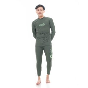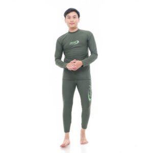 Setelan renang panjang pria dewasa polos warna army, terdapat sablon logo di baju bagian depan, dan di bagian paha kanan celana. one sets berbahan Nylon spandek premium quality, terdapat tali bagian pinggang celana memudahkan anda untuk menyesuaikan sesuai ukuran pinggang. di rancang confort strech dapat bebas bergerak dalam air.
