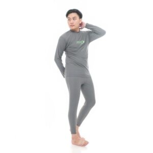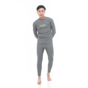 Setelan renang panjang pria dewasa polos warna abu, terdapat sablon logo di baju bagian depan, dan di bagian paha kanan celana. one sets berbahan Nylon spandek premium quality, terdapat tali bagian pinggang celana memudahkan anda untuk menyesuaikan sesuai ukuran pinggang. di rancang confort strech dapat bebas bergerak dalam air.